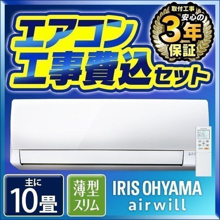 アイリスオーヤマ エアコン 10畳 工事費込み ルームエアコン2 8kw 省エネ 左右自動ルーバー搭載 本体 室外機 リモコンセット 2020年モデル.